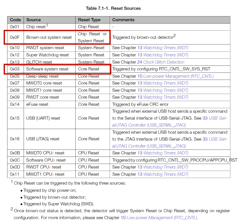 When this happens, you would expect to see a reboot reason code of 0x0F but, instead, you will see a reason code of 0x3 in the serial logs. The good news is that esp_reset_reason already handles this issue properly and still gives you the correct code so your application logic should be unaffected.